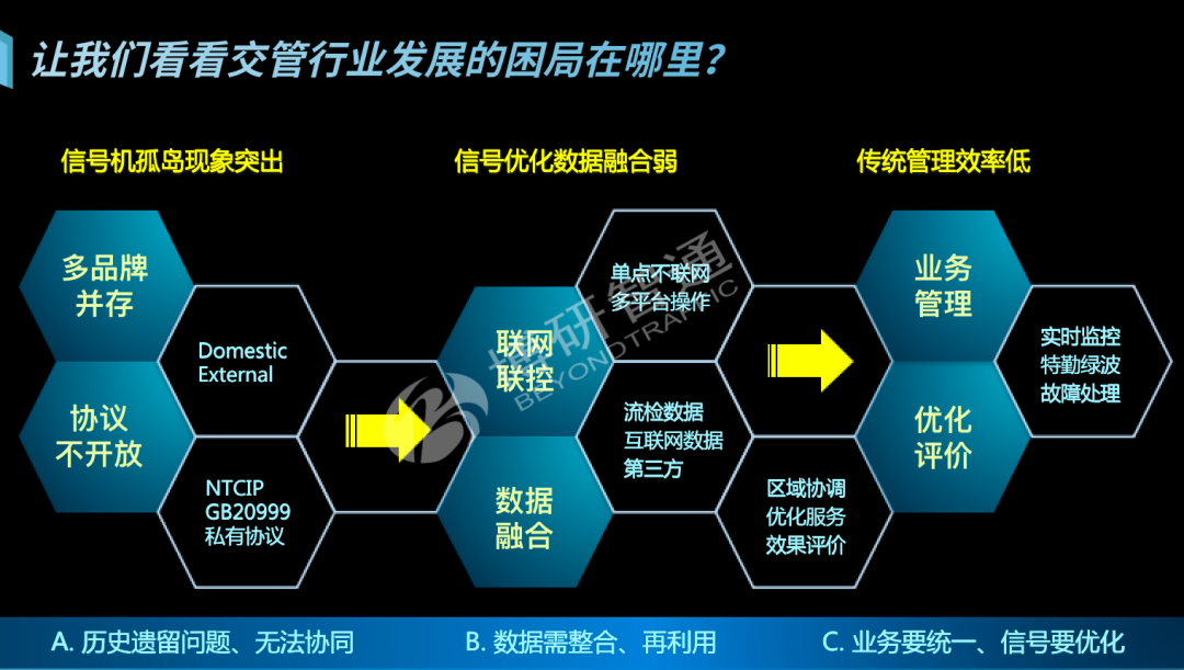 交管行业与通信或汽车制造等行业不同的是,从国外到国内,通讯标准繁杂不一,百花齐放。因此,交管行业的首要痛点问题即行业不规范、标准不统一。吴伟娜表示,业务无法集中管理,数据自然不能融合利用,我们期待的人工智能根本没有用武之地,更无法谈及完美。